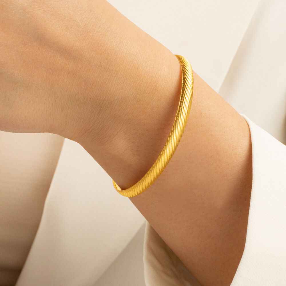 - Ofis Şıklığı: Kalın bir klasik altın bilezik, şık bir bluz veya ceketle kombinlendiğinde profesyonel bir görünüm kazandırır.