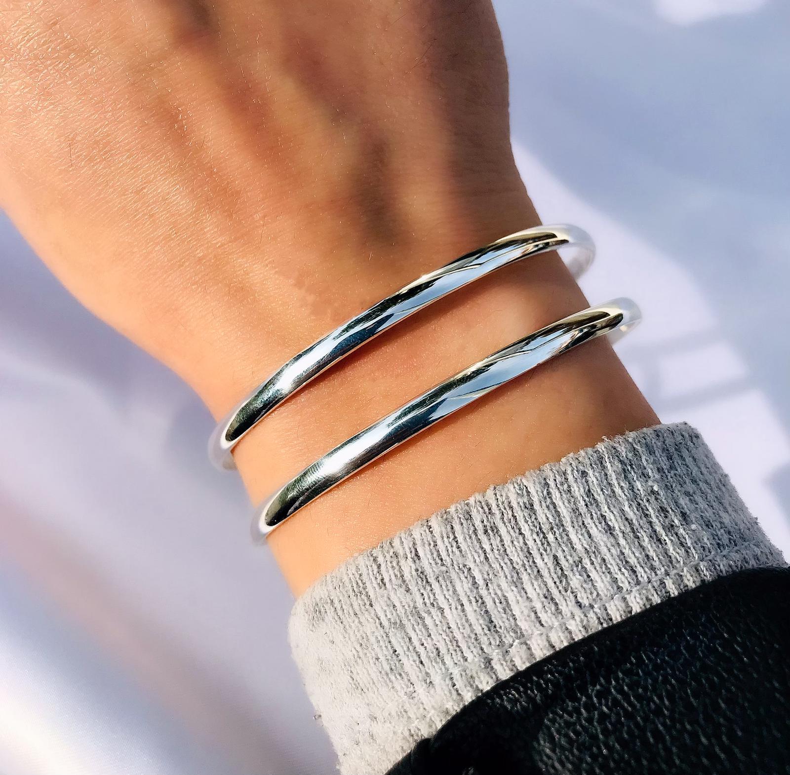 Düz gümüş bilezikler, minimalizm arayanlar için mükemmel bir seçimdir. Basit tasarımları ile her tür kıyafetle kolaylıkla kombinlenebilirler. Genellikle:
